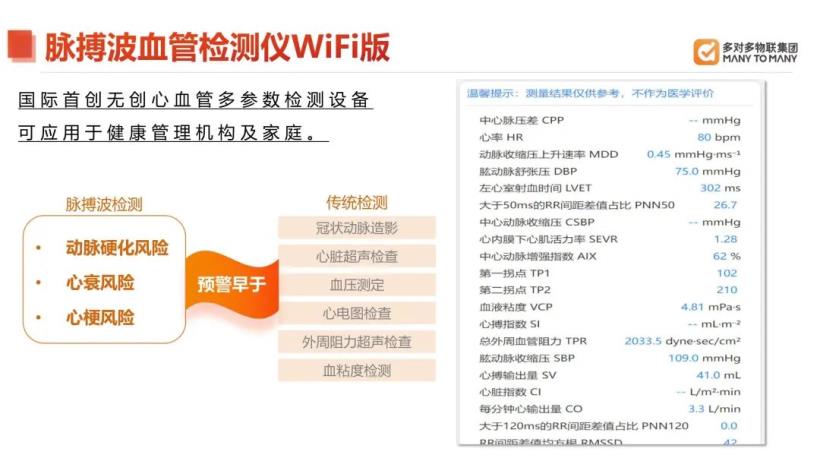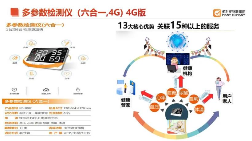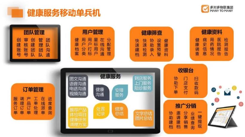 多對(duì)多物聯(lián)集團(tuán)以“科技防大病·管慢病·促健康”為使命,為醫(yī)康養(yǎng)行業(yè)搭建了個(gè)高效精準(zhǔn)服務(wù)每個(gè)家庭和組織的AI健康管理服務(wù)系統(tǒng),賦能醫(yī)康養(yǎng)行業(yè)拓展增量業(yè)務(wù),開(kāi)展包括數(shù)智建檔、數(shù)據(jù)分析、健康評(píng)測(cè)、風(fēng)險(xiǎn)監(jiān)測(cè)、預(yù)警干預(yù)、精準(zhǔn)方案、效果評(píng)估、科普咨詢(xún)和AI互動(dòng)等在內(nèi)的健康服務(wù),從而助力實(shí)現(xiàn)業(yè)績(jī)效益倍增。