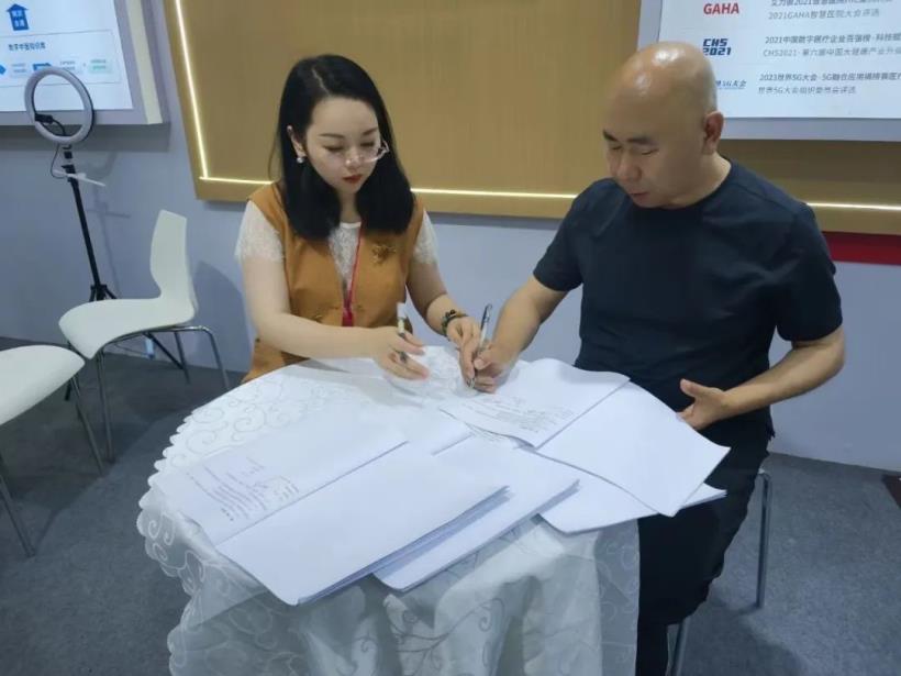 (展商與客戶現(xiàn)場(chǎng)敲定合作事宜)