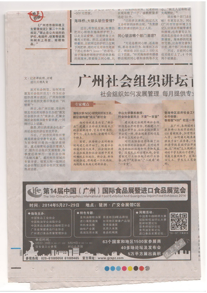 《廣州日報(bào)》5月15日刊登廣州國際食品展