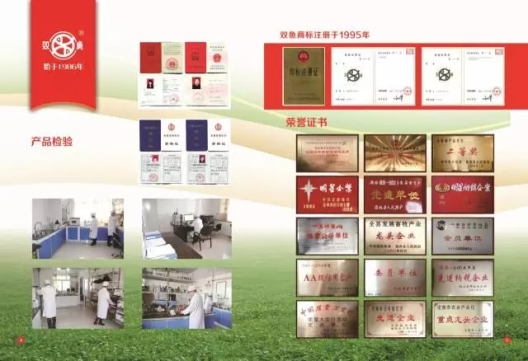 公司現(xiàn)有產(chǎn)品三大類40多個品種,歷年經(jīng)國家抽檢、省、市、縣食品監(jiān)督檢驗(yàn)部門監(jiān)督檢測,產(chǎn)品質(zhì)量均符合國家標(biāo)準(zhǔn)要求,三類產(chǎn)品于1995年經(jīng)國家商標(biāo)局分別注冊“雙魚”商標(biāo)。企業(yè)歷年受到省、市、縣各級人民政府的表彰獎勵,先后獲得“甘肅省鄉(xiāng)鎮(zhèn)企業(yè)質(zhì)量效益A級企業(yè)稱號”,“中國質(zhì)量萬里行全國先進(jìn)單位”,“3.15打假、扶優(yōu)協(xié)作聯(lián)盟單位”、“甘肅省誠信守法鄉(xiāng)鎮(zhèn)企業(yè)”,“定西市明星企業(yè)”,“定西市農(nóng)業(yè)產(chǎn)業(yè)化重點(diǎn)龍頭企業(yè)”,“臨洮縣發(fā)展畜牧產(chǎn)業(yè)龍頭企業(yè)”等榮譽(yù),2004年首批通過國家質(zhì)檢總局乳制品生產(chǎn)許可審查,獲得乳制品生產(chǎn)許可證,2006年被甘肅省質(zhì)量技術(shù)監(jiān)督局評價為質(zhì)量體系A(chǔ)級企業(yè)。
