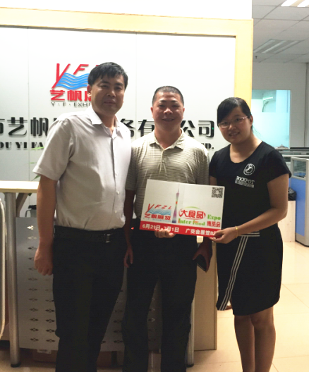 圖為:藝帆展覽鄧先生(運營總監(jiān))、葉小姐(觀眾組織部長)與茂名市食品行業(yè)協(xié)會蔡秘書長合影