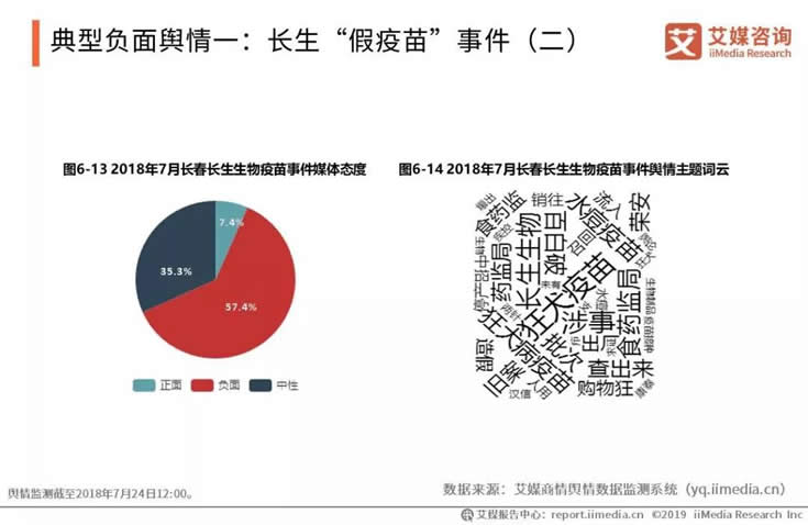 自2018年7月15日事件爆發(fā)一周內(nèi),圍繞“狂犬疫苗”“長(zhǎng)生生物”等為主題詞,輿論開始不斷發(fā)酵。媒體輿論整體倒向負(fù)面,所占比例超過(guò)一般,而正面輿論僅有7.4%,其內(nèi)容多支持政府及時(shí)治理。