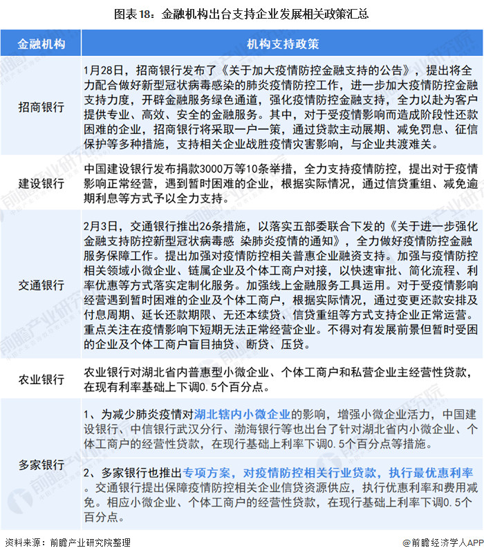 在中央發(fā)布多項(xiàng)強(qiáng)化金融服務(wù),支持防控新型冠狀病毒感染肺炎疫情的舉措后,銀行業(yè)等金融機(jī)構(gòu)積極響應(yīng),在服務(wù)疫情流行地區(qū)防控企業(yè)的同時(shí),也積極助力受疫情影響的小微企業(yè)的發(fā)展,提供差異化優(yōu)惠的金融服務(wù);如招商銀行、中國建設(shè)銀行、交通銀行、農(nóng)業(yè)銀行等。