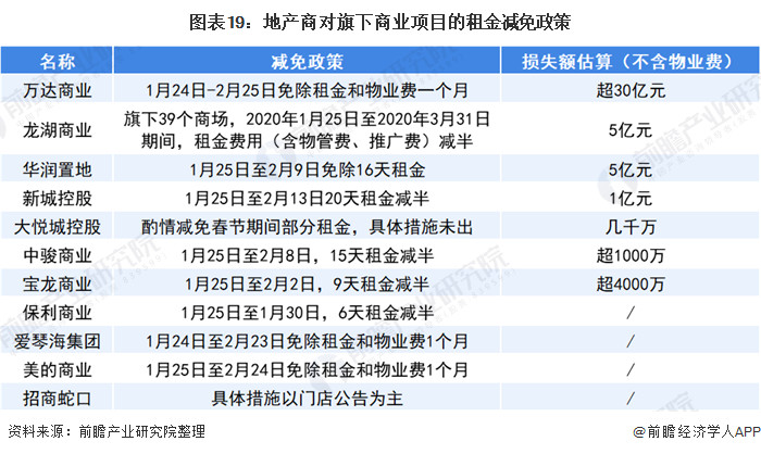 多個(gè)行業(yè)協(xié)會及部分省份的地方政府發(fā)起了為中小企業(yè)減免租金的倡議,其中萬達(dá)、龍湖、華潤、保利等地產(chǎn)商紛紛宣布了對旗下商業(yè)項(xiàng)目的租金減免政策,幫助旗下商戶一起克服困難,挺過艱難時(shí)刻。