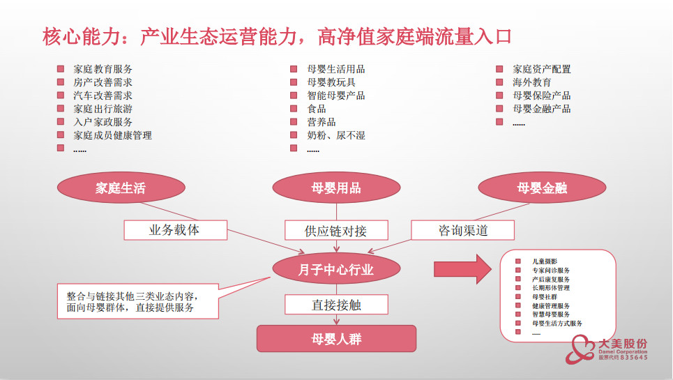 月子會(huì)所是母嬰行業(yè)的入口,是非常融合的業(yè)態(tài),后續(xù)再往母嬰行業(yè)的下游走是非常有優(yōu)勢(shì)的。同時(shí),月子會(huì)所是高凈值家庭端流量入口,我們可以推算出他們的畫(huà)像:家庭品質(zhì)生活服務(wù)、母嬰用品等層面是非常好的受眾,轉(zhuǎn)化率也很高。