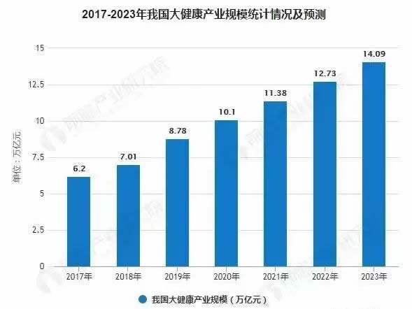 2017-2023年我國(guó)大健康產(chǎn)業(yè)規(guī)模統(tǒng)計(jì)情況及預(yù)測(cè)數(shù)據(jù)來源:前瞻產(chǎn)業(yè)研究院整理