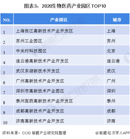 據(jù)CCID數(shù)據(jù),2020我國生物醫(yī)藥產(chǎn)業(yè)園區(qū)TOP10分布地區(qū)較為分散。上海張江高新技術(shù)產(chǎn)業(yè)開發(fā)區(qū)位居第一,蘇州工業(yè)園區(qū)和中關(guān)村科技園區(qū)分別位居第二、第三。