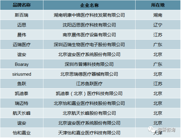 中國呼吸機主要生產(chǎn)品牌及其生產(chǎn)企業(yè)基地統(tǒng)計