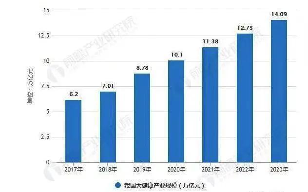 而在中國,過去數(shù)年,大健康產(chǎn)業(yè)增速彪悍,2018年規(guī)模突破7萬億元,2019年達到8.78萬億元,2020年則有望突破10萬億元,2030年有望達到16萬億元。