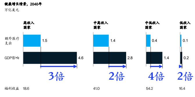 2040年,全球GDP有望額外增加12萬(wàn)億美元,主要得益于健康問(wèn)題的減少及勞動(dòng)參與度的提升