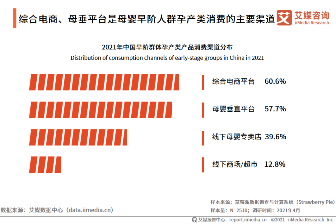 iiMedia Research(艾媒咨詢)數(shù)據(jù)顯示,早階群體孕產(chǎn)產(chǎn)品方面的消費渠道以綜合電商和母垂平臺為主,分別占比為60.6%和57.7%。艾媒咨詢分析師認為,母垂平臺對于媽媽群體特別是早階群體來說使用頻率高,且影響力強,依靠平臺的專業(yè)性和內(nèi)容豐富度,母垂平臺能建立起較高的用戶信任度。而隨著母垂平臺的電商屬性加強,其內(nèi)容轉(zhuǎn)化的潛力也不斷增加,有望成為早階群體最主要的孕產(chǎn)類產(chǎn)品購物渠道。