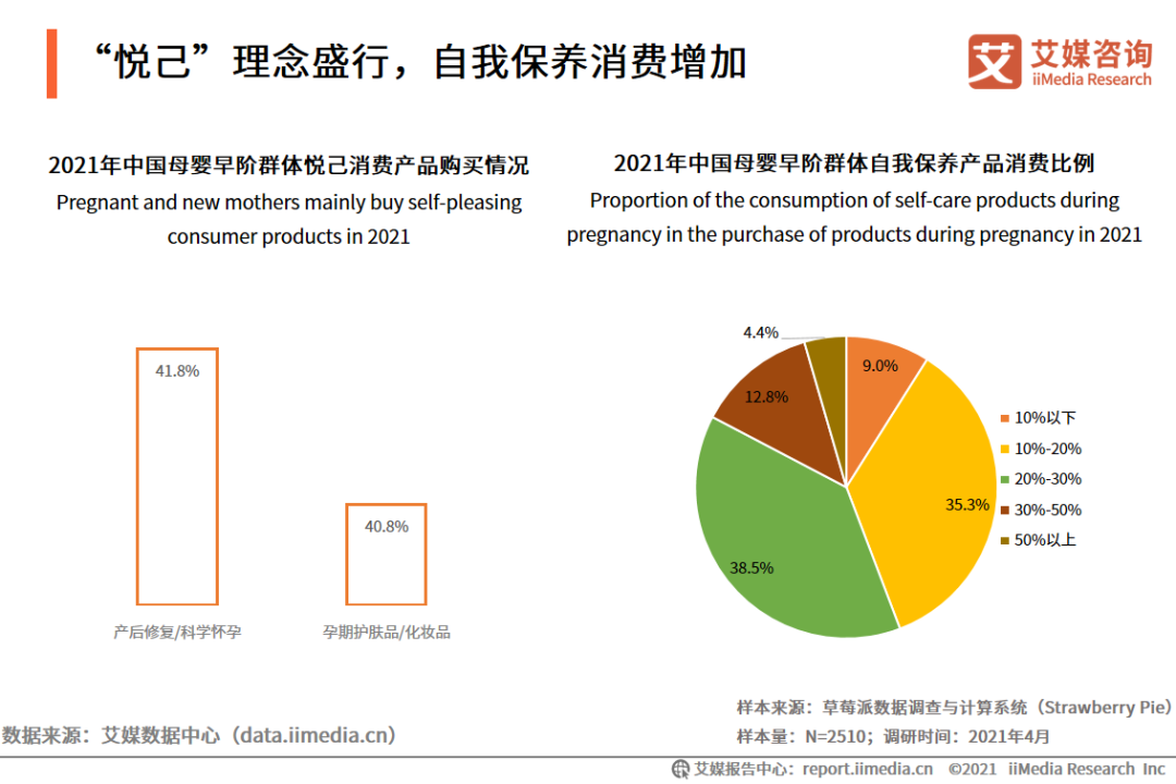 iiMedia Research(艾媒咨詢)數(shù)據(jù)顯示,產(chǎn)后修復(fù)和孕期護膚彩妝產(chǎn)品已成為母嬰早階群體主要購買的悅己產(chǎn)品之一,其中大部分孕媽在孕期自我保養(yǎng)類產(chǎn)品的消費占比處于10%-30%之間,有少部分孕媽此類消費支出更高。艾媒咨詢分析師發(fā)現(xiàn),“悅己”消費也正日益成為女性主流消費模式,尤其是新生代孕媽,她們的思想更加進步,對自身的關(guān)注更顯著,“取悅自己”正成為母嬰行業(yè)長期消費主題之一。