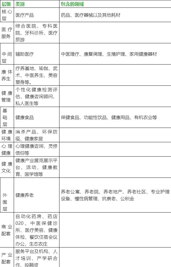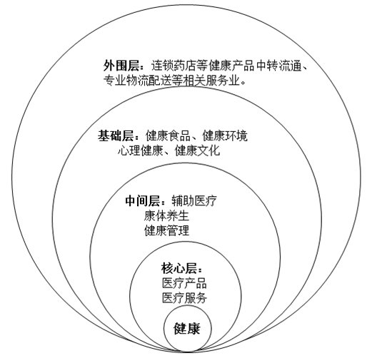 根據(jù)與人類健康關(guān)聯(lián)度的不同層次,可以把廣義健康產(chǎn)業(yè)劃分為: