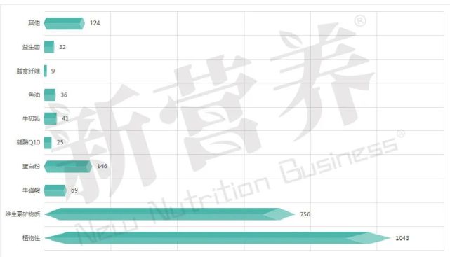 在營養(yǎng)素的使用上,植物性和維礦類的產品為兩大大主流產品,占比分別為46%、33%。另外,魚油、蛋白類、膳食纖維等也越來越受到市場的歡迎。