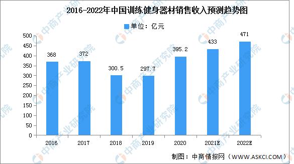 2016-2020年中國訓(xùn)練健身器材行業(yè)的銷售收入有所波動(dòng),期間2018-2019年市場規(guī)模出現(xiàn)下降后,2020年因?yàn)橐咔橄拗瞥鲂惺逛N售收入得到恢復(fù),同比增長32.8%,達(dá)395.2億元,預(yù)計(jì)2022年將增長至471億元。