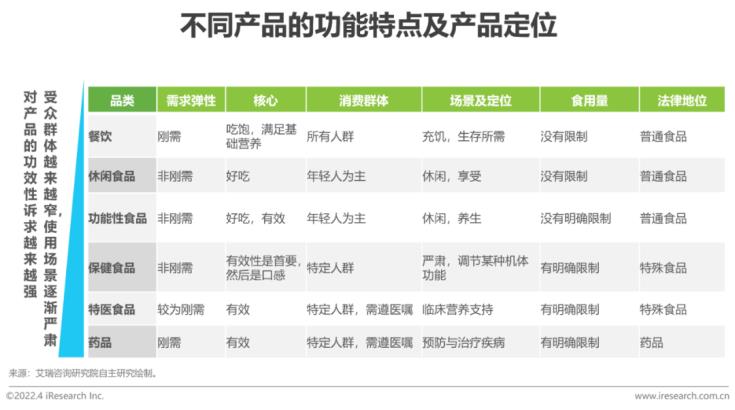消費(fèi)者對(duì)產(chǎn)品的需求從最基本的滿足生存所需,到享受型需求再到營(yíng)養(yǎng)保健、預(yù)防與治療疾病,對(duì)產(chǎn)品的功效性訴求越來(lái)越強(qiáng),使用場(chǎng)景逐漸嚴(yán)肅。