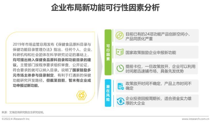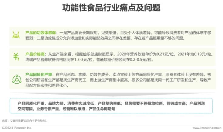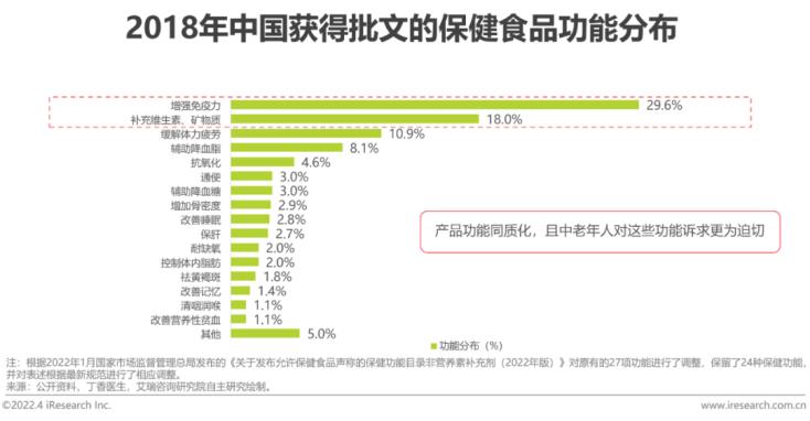 行業(yè)問(wèn)題:產(chǎn)品功能聲稱受限且已有產(chǎn)品功能同質(zhì)化嚴(yán)重,消費(fèi)者更多細(xì)分化的保健需求或?qū)㈦y以滿足。