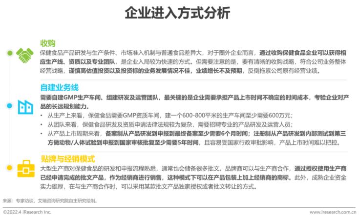 隨著國(guó)家相關(guān)行業(yè)法規(guī)的逐步出臺(tái)和不斷細(xì)化,國(guó)家對(duì)保健食品行業(yè)的監(jiān)管日趨嚴(yán)格,行業(yè)規(guī)范化程度和準(zhǔn)入門(mén)檻進(jìn)一步提高。保健食品作為特殊食品與普通食品面臨完全不同的監(jiān)管,對(duì)于圈外玩家來(lái)說(shuō),通過(guò)收購(gòu)是入局較為快速的方式。
