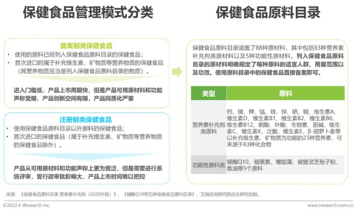 中國(guó)根據(jù)保健食品所用原料的不同,對(duì)產(chǎn)品實(shí)施注冊(cè)和備案雙軌制管理。注冊(cè)制的產(chǎn)品從可用原材料和功能聲稱上更為寬泛,但是需要對(duì)產(chǎn)品進(jìn)行系統(tǒng)評(píng)審,時(shí)間周期長(zhǎng);備案制簡(jiǎn)化了行政審批流程,加速了產(chǎn)品上市時(shí)間,但是產(chǎn)品可用原材料和功能聲稱受限,導(dǎo)致產(chǎn)品同質(zhì)化嚴(yán)重。