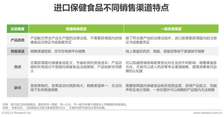 進(jìn)口保健食品在中國(guó)的銷售方式分為一般貿(mào)易和跨境電商兩種方式,中國(guó)對(duì)不同的銷售方式實(shí)施不同的監(jiān)管。