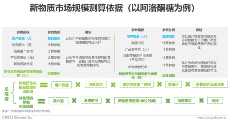市場(chǎng)規(guī)模分為兩部分:第一部分考慮新物質(zhì)具有抑制肥胖、易消化、降血糖、抑制2型糖尿病等特殊升級(jí)特點(diǎn),所以新產(chǎn)品可以面向特殊人群售賣(mài),為市場(chǎng)帶來(lái)增量部分;第二部分則認(rèn)為新物質(zhì)對(duì)腸胃負(fù)擔(dān)輕、降血糖的優(yōu)勢(shì)會(huì)吸引一部分有高需求且價(jià)格敏感度低、更愿意為健康買(mǎi)單的消費(fèi)者和原本有消費(fèi)意愿但擔(dān)心赤蘚糖醇不足影響健康的消費(fèi)者轉(zhuǎn)化到新物質(zhì)市場(chǎng)。