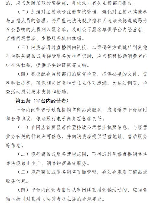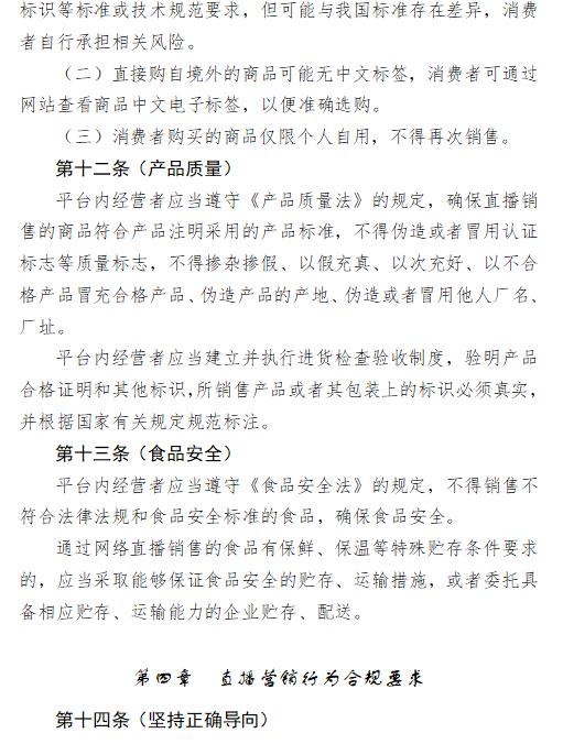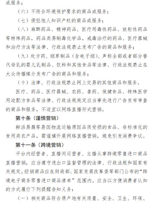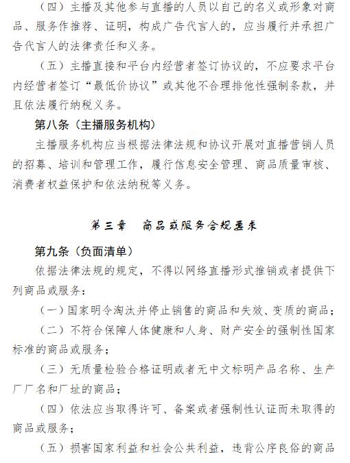 《指引》不僅明確了5類網(wǎng)絡(luò)直播主體責(zé)任內(nèi)容(包括建立主播黑名單制度等);同時(shí)列明了網(wǎng)絡(luò)直播營(yíng)銷商品(服務(wù))的10項(xiàng)負(fù)面清單等。其中食品、保健食品等成為重點(diǎn)關(guān)注的內(nèi)容。
