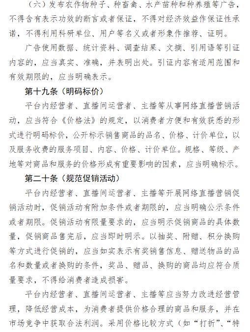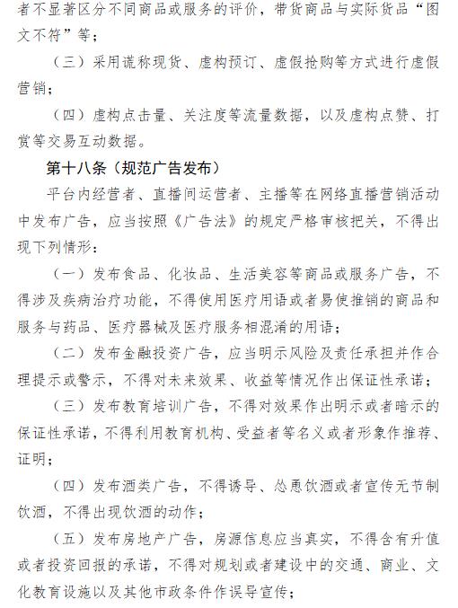在網(wǎng)絡(luò)直播營(yíng)銷活動(dòng)中醫(yī)療、藥品、醫(yī)療器械、農(nóng)藥、獸藥、保健食品、特殊醫(yī)學(xué)用途配方食品等法律、行政法規(guī)規(guī)定應(yīng)當(dāng)事先進(jìn)行廣告發(fā)布審查的商品和服務(wù),不適宜以網(wǎng)絡(luò)直播形式營(yíng)銷。