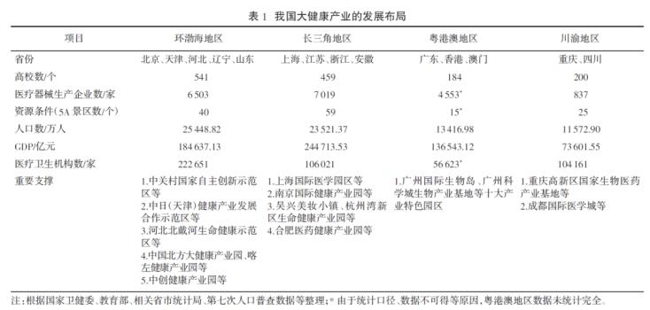 一方面,重點(diǎn)城市群內(nèi)部,中心城市集聚效應(yīng)更強(qiáng)。如川渝地區(qū)主要以成都和重慶中心城區(qū)為“雙核”,集聚效應(yīng)明顯,2020 年“雙核”人口數(shù)占川渝地區(qū)人口總數(shù)的27.03%,經(jīng)濟(jì)總量占37.3%,授權(quán)的發(fā)明專利數(shù)占70%以上,呈現(xiàn)出創(chuàng)新要素集聚、產(chǎn)業(yè)發(fā)展?jié)摿薮蟮奶卣?。盡管如此,對(duì)比環(huán)渤海、長(zhǎng)三角、粵港澳地區(qū)的中心城市,川渝地區(qū)中心城區(qū)仍存在較大差距,經(jīng)濟(jì)總量不到北京、上海等地的一半。另一方面,從各地重點(diǎn)區(qū)域?qū)Υ蠼】诞a(chǎn)業(yè)的布局來看,都側(cè)重于市場(chǎng)規(guī)模大、增長(zhǎng)速度快、發(fā)展前景好的產(chǎn)業(yè),集中于生物制藥、醫(yī)療器械、醫(yī)療衛(wèi)生等,而生物農(nóng)業(yè)、健康旅游、健康保險(xiǎn)等產(chǎn)業(yè)布局較少,導(dǎo)致產(chǎn)業(yè)鏈發(fā)展不均衡,部分區(qū)域甚至出現(xiàn)缺鏈、斷鏈等情況。
