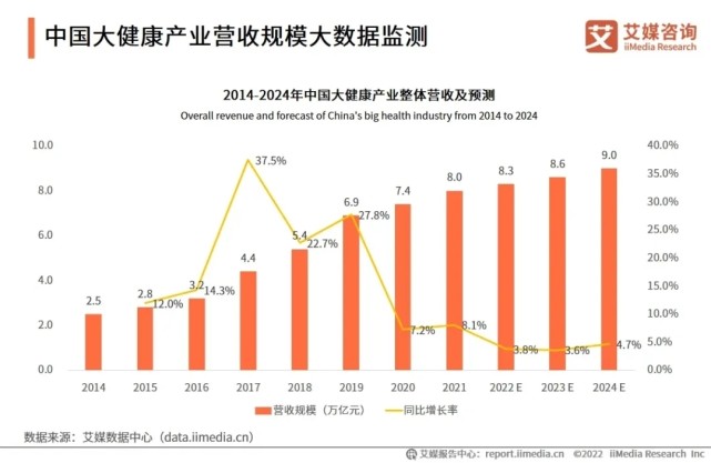 艾媒咨詢(xún)也在《2022-2023年全球與中國(guó)大健康產(chǎn)業(yè)運(yùn)行大數(shù)據(jù)及決策分析報(bào)告》中指出,我國(guó)大健康產(chǎn)業(yè)營(yíng)收規(guī)??捎^,整體保持穩(wěn)定增長(zhǎng),2021年?duì)I收規(guī)模達(dá)8.0萬(wàn)億元,增幅8.1%,預(yù)計(jì)2024年將達(dá)9.0萬(wàn)億元。受新冠疫情影響,我國(guó)大健康產(chǎn)業(yè)市場(chǎng)需求大幅上升,吸納資本潛力巨大,2021年中國(guó)醫(yī)療健康產(chǎn)業(yè)投融資金額達(dá)4169.44億元。此外,人工智能、大數(shù)據(jù)、物聯(lián)網(wǎng)、互聯(lián)網(wǎng)等新技術(shù)的加入,為大健康產(chǎn)業(yè)增添新業(yè)態(tài)、新場(chǎng)景、新增長(zhǎng),對(duì)大健康產(chǎn)業(yè)的發(fā)展產(chǎn)生深遠(yuǎn)影響,未來(lái)發(fā)展前景廣闊。