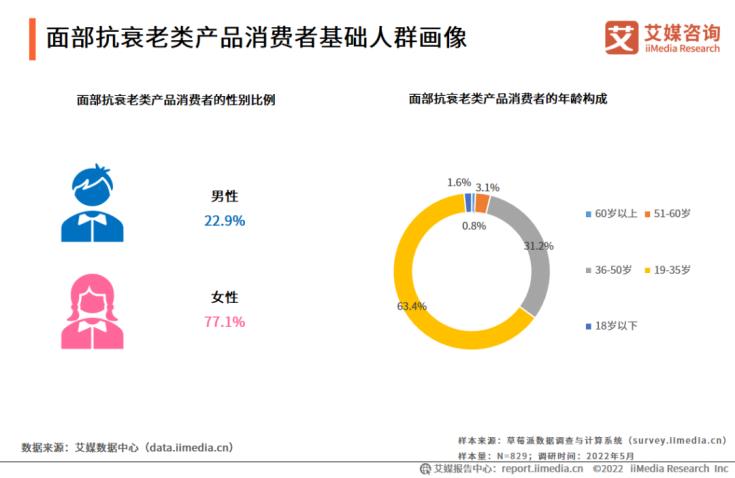 iiMedia Research(艾媒咨詢)數(shù)據(jù)顯示,購買面部抗衰老類產(chǎn)品的消費者中女性占77.1%,男性占22.9%,63.4%的消費者年齡為19-35歲,31.2%消費者年齡為36-50歲。艾媒咨詢分析師認為,隨著人們對面部抗衰老的意識逐漸深化,延緩衰老的需求日益增長,且消費面部抗衰老類產(chǎn)品的消費者大部分為女性和90后、00后的年輕群體,面部抗衰老類企業(yè)消費目標群體應(yīng)著重面向年輕女性消費者。
