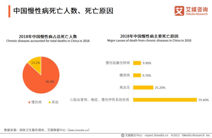iiMedia Research(艾媒咨詢)數(shù)據(jù)顯示,2018年中國慢性病死亡人數(shù)占總死亡人數(shù)的86.8%,主要慢性病死亡原因中,心腦血管病、癌癥、慢性呼吸病占比79.4%。面對當前仍然嚴峻的慢性病防控形勢,黨中央、國務(wù)院高度重視,將實施慢性病綜合防控戰(zhàn)略納入《“健康中國2030”規(guī)劃綱要》,將合理膳食和重大慢病防治納入健康中國行動,進一步聚焦當前國民面臨的主要營養(yǎng)和慢性病問題。