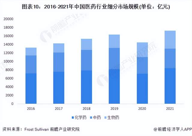 根據(jù)Frost&Sullivan數(shù)據(jù),三大領(lǐng)域中,生物藥發(fā)展迅猛,規(guī)模占比逐年提升,從2016年的14%上升至2021年的約24%;中藥規(guī)模占比穩(wěn)定,保持在25%左右;化學藥處于轉(zhuǎn)型陣痛期,市場占比回落明顯,其失勢在恒瑞、東陽光等傳統(tǒng)大型化學藥企的事件中可見一斑??傮w而言,未來隨著人口老年化進程的推進,我國加大對醫(yī)療行業(yè)投資的趨勢不可逆轉(zhuǎn),行業(yè)發(fā)展的經(jīng)濟環(huán)境較好,醫(yī)藥行業(yè)步入“黃金十年”的大勢不會改變。