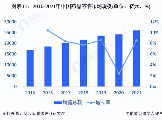 據(jù)商務(wù)部發(fā)布的報告,2021年,全國藥品流通市場銷售規(guī)模穩(wěn)步增長,增速逐漸恢復(fù)至疫情前水平。全國七大類醫(yī)藥商品銷售總額26064億元,扣除不可比因素同比增長8.5%,增速同比加快6.1個百分點。其中,藥品零售市場銷售額為5449億元,扣除不可比因素同比增長7.4%;藥品批發(fā)市場銷售額為20615億元,扣除不可比因素同比增長8.65%。