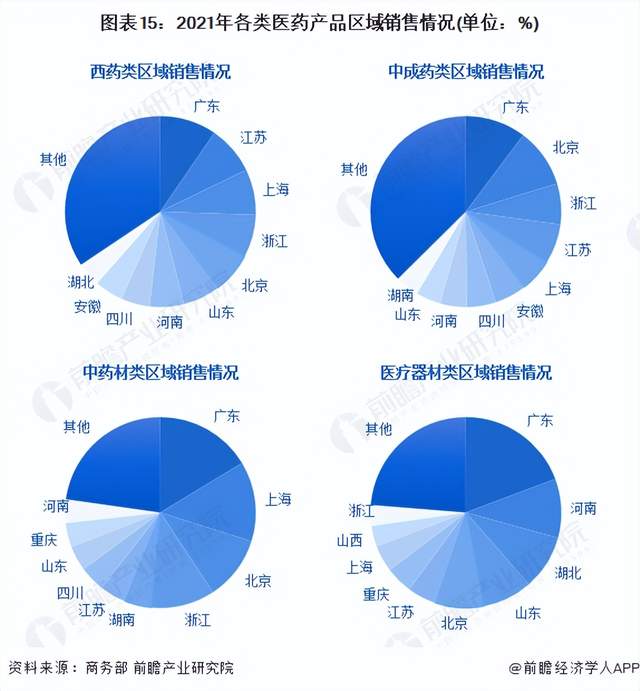 從四大類藥品區(qū)域銷售情況可見,廣東省醫(yī)藥流通市場規(guī)模在全國表現(xiàn)突出。