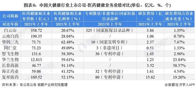 注:營業(yè)收入為各公司2021年上半年數(shù)據(jù);云南白藥、智飛生物、復(fù)星醫(yī)藥毛利率為公司整體經(jīng)營毛利率;非遺項目/國家醫(yī)保目錄品種為截至2021年上半年的累計數(shù)