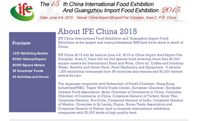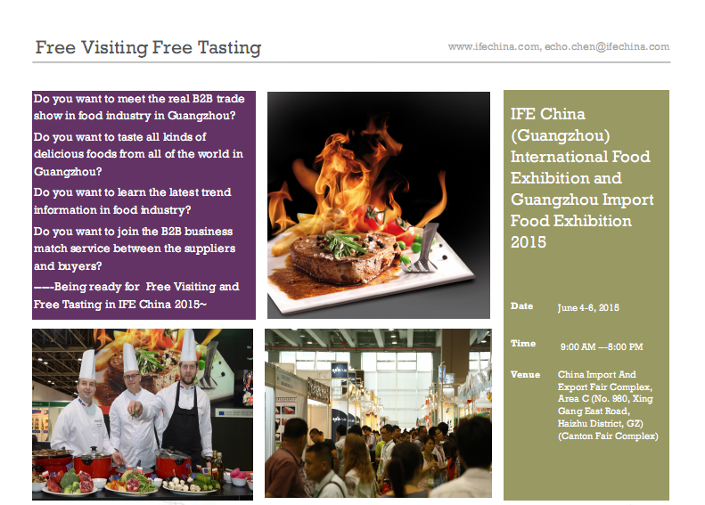 Being ready for Free Visiting and Free Tasting in IFE China 2015~